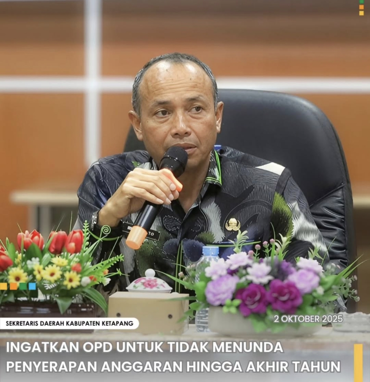 Dalam arahannya, Sekda menekankan pentingnya percepatan realisasi anggaran, mengingat hingga akhir September 2025 serapan APBD baru mencapai sekitar 53 persen. Angka tersebut dinilai masih rendah dibandingkan periode yang sama pada tahun 2024, yang telah mencapai 62 persen.