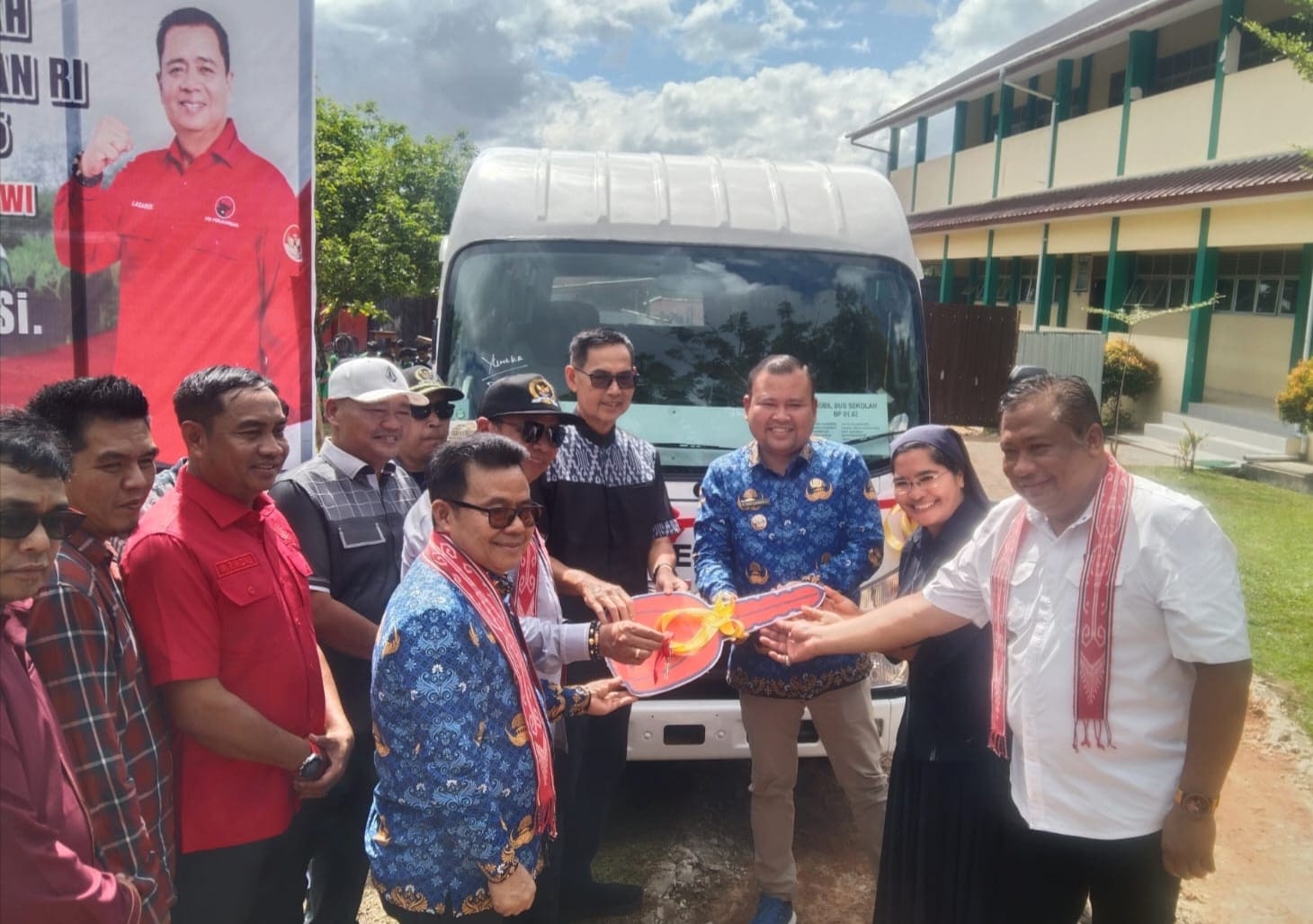 Penyerahan kunci bus sekolah dilakukan secara simbolis oleh Lasarus yang juga menjabat sebagai Ketua DPD PDI Perjuangan Kalimantan Barat, di halaman SMAS Santa Maria Melawi, Rabu (17/12/2025).