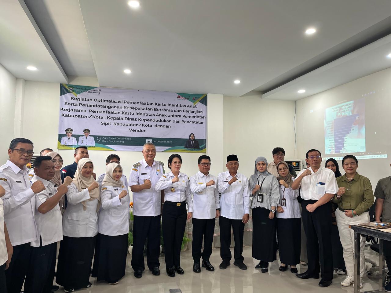 Langkah konkret tersebut diwujudkan melalui penandatanganan Kesepakatan Bersama (KB) dan Perjanjian Kerja Sama (PKS) pemanfaatan Kartu Identitas Anak (KIA), yang melibatkan delapan kabupaten/kota lainnya di Kalimantan Barat. Kegiatan ini berlangsung di Kantor Dinas Kependudukan dan Catatan Sipil Kota Singkawang, Rabu (22/10/2025).