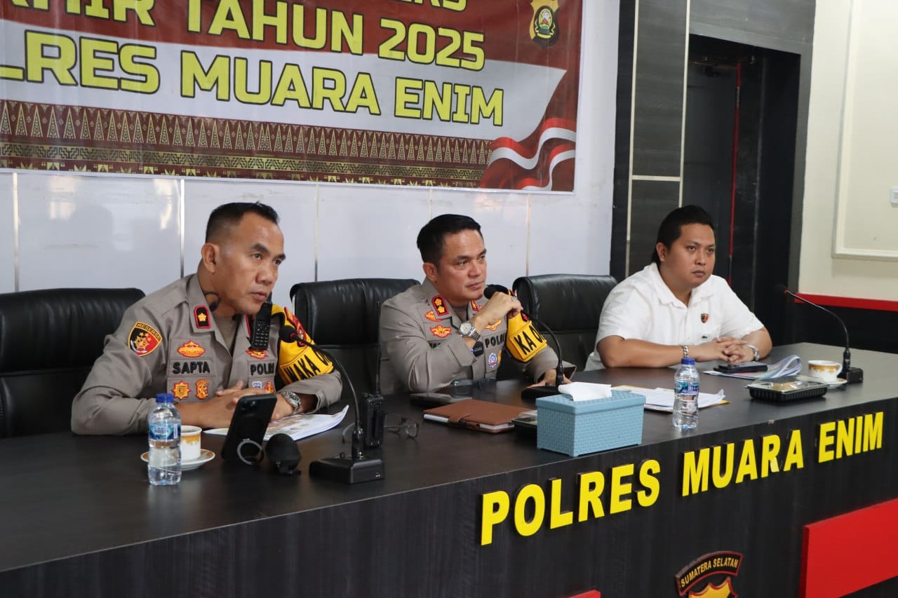 Kapolres juga menyampaikan bahwa Polres Muara Enim telah melaksanakan berbagai operasi kepolisian sepanjang tahun 2025, di antaranya Operasi Ketupat, Operasi Patuh, Operasi Pekat, Operasi Sikat, Operasi Keselamatan, Operasi Zebra, serta Operasi Lilin yang masih berlangsung hingga 2 Januari 2026.